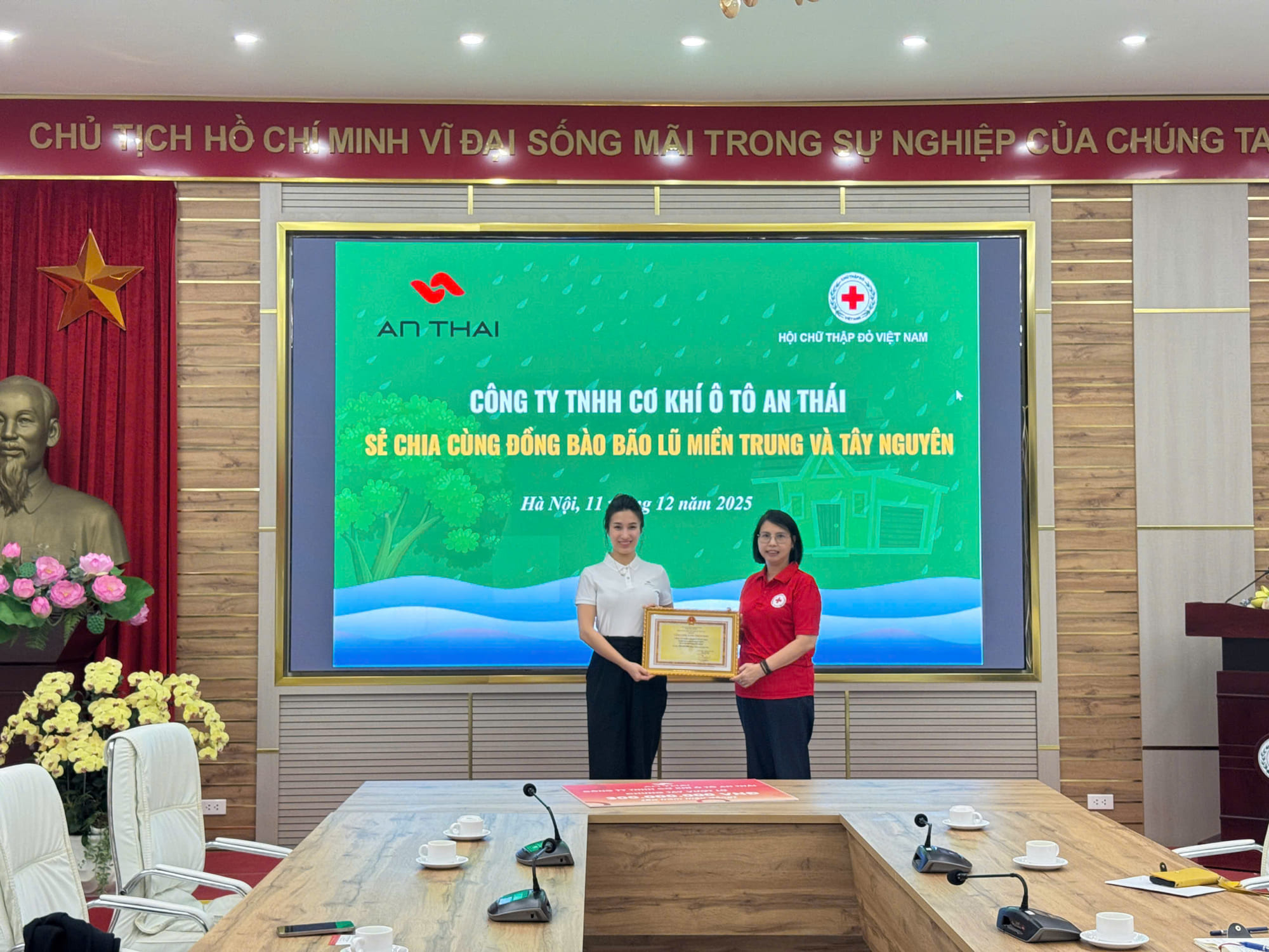 Ngày 11/12/2025 , Công ty TNHH Cơ khí Ô tô An Thái đã trực tiếp có mặt tại Hội Chữ Thập Đỏ Việt Nam để trao tặng và quyên góp ủng hộ đồng bào các tỉnh Miền Trung và Tây Nguyên – những khu vực đang phải gánh chịu thiệt hại nặng nề do mưa lũ và bão lớn trong thời gian vừa qua.
