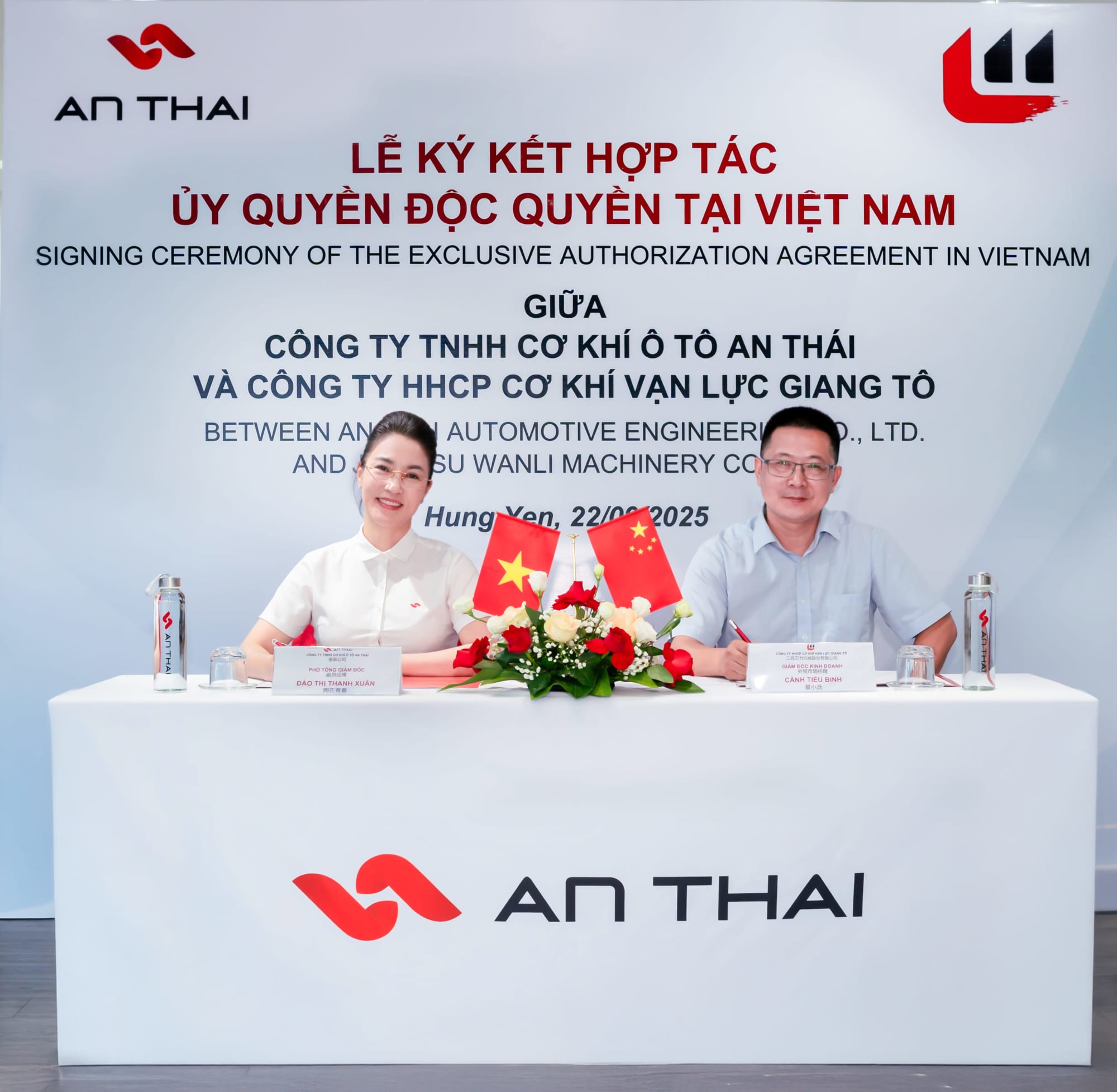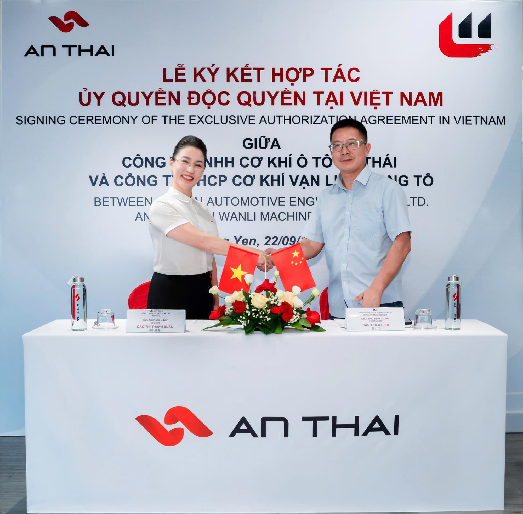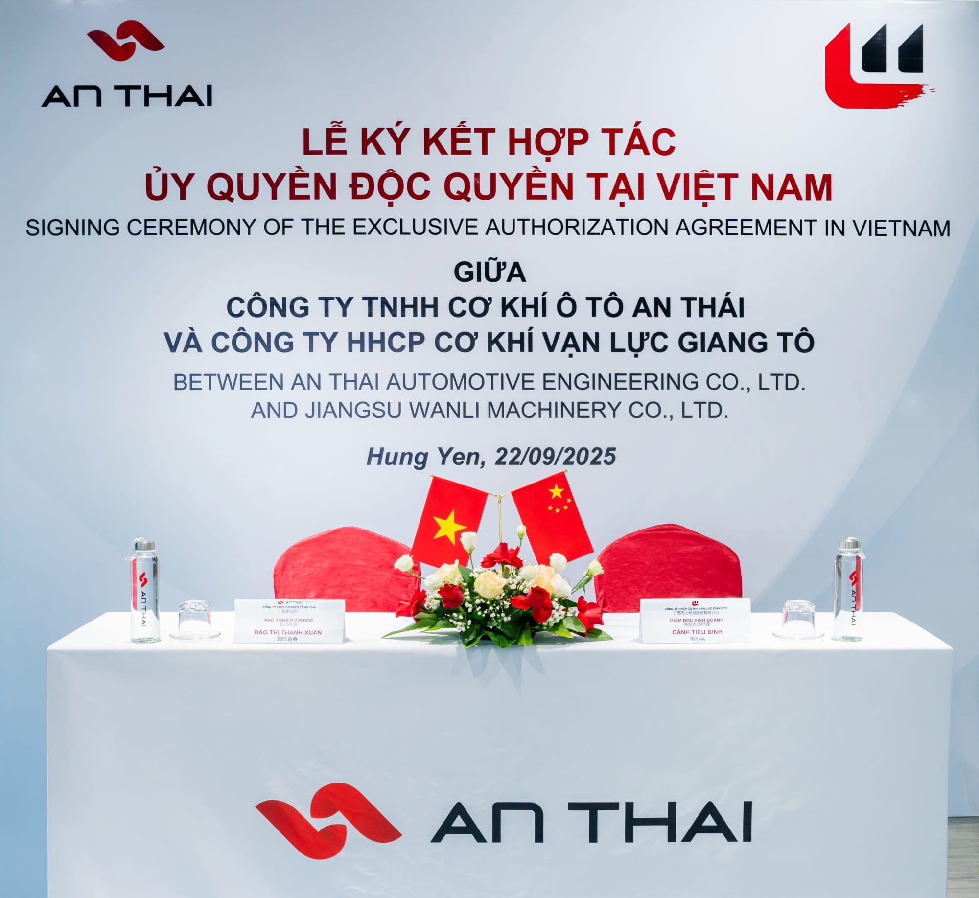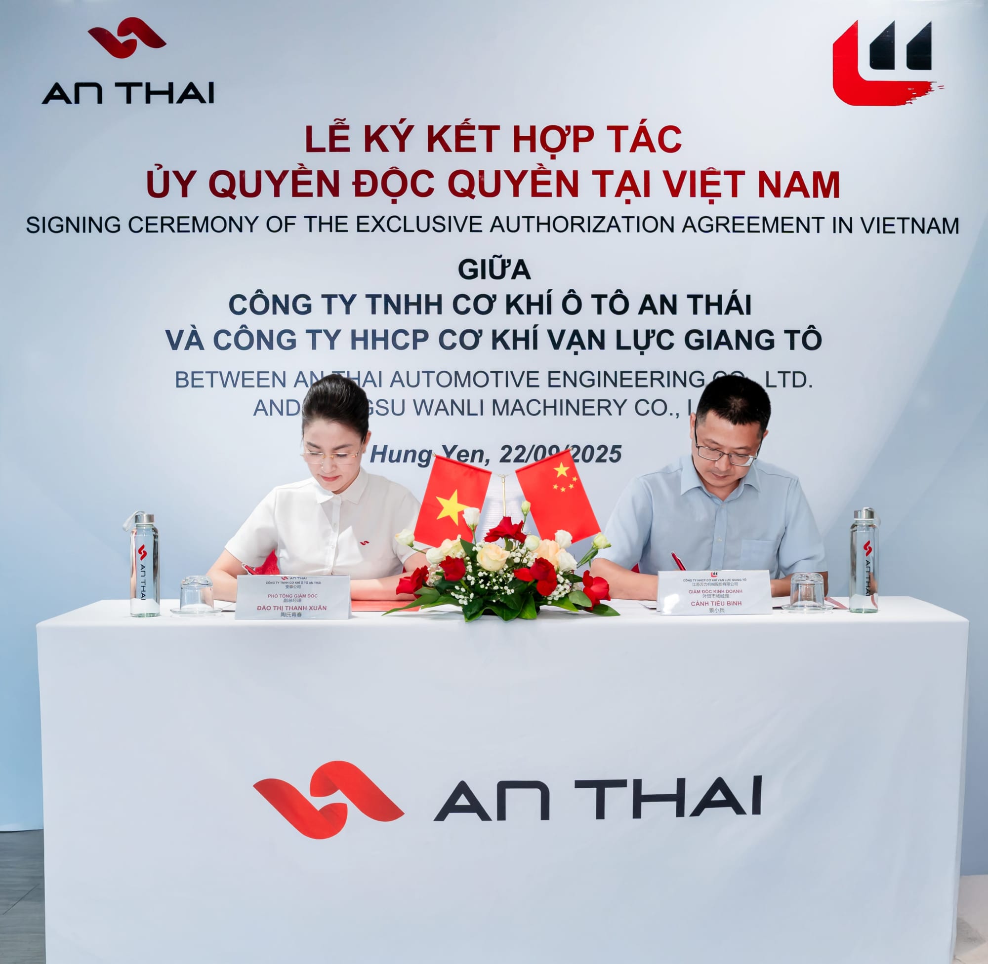 Ngày 22/9/2025, Công ty TNHH Cơ khí Ô tô An Thái chính thức ký kết hợp tác độc quyền với Công ty Cơ khí Vạn Lực Giang Tô – một trong những nhà sản xuất trục cơ ô tô hàng đầu Trung Quốc, sở hữu quy mô lớn, công nghệ hiện đại và tiêu chuẩn quốc tế khắt khe.