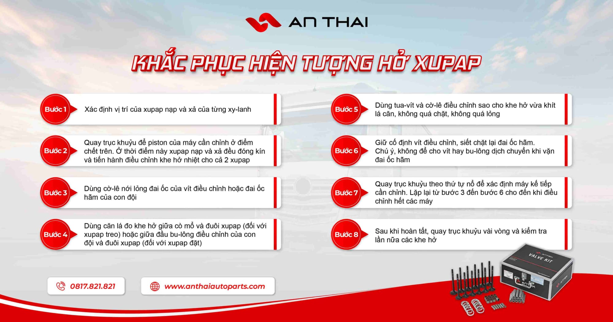 Để khắc phục hiện tượng hở Xupap, chúng ta có thể thực hiện căn chỉnh lại khe hở Xupap theo các bước sau: